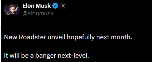 New Roadster unveil hopefully next month.